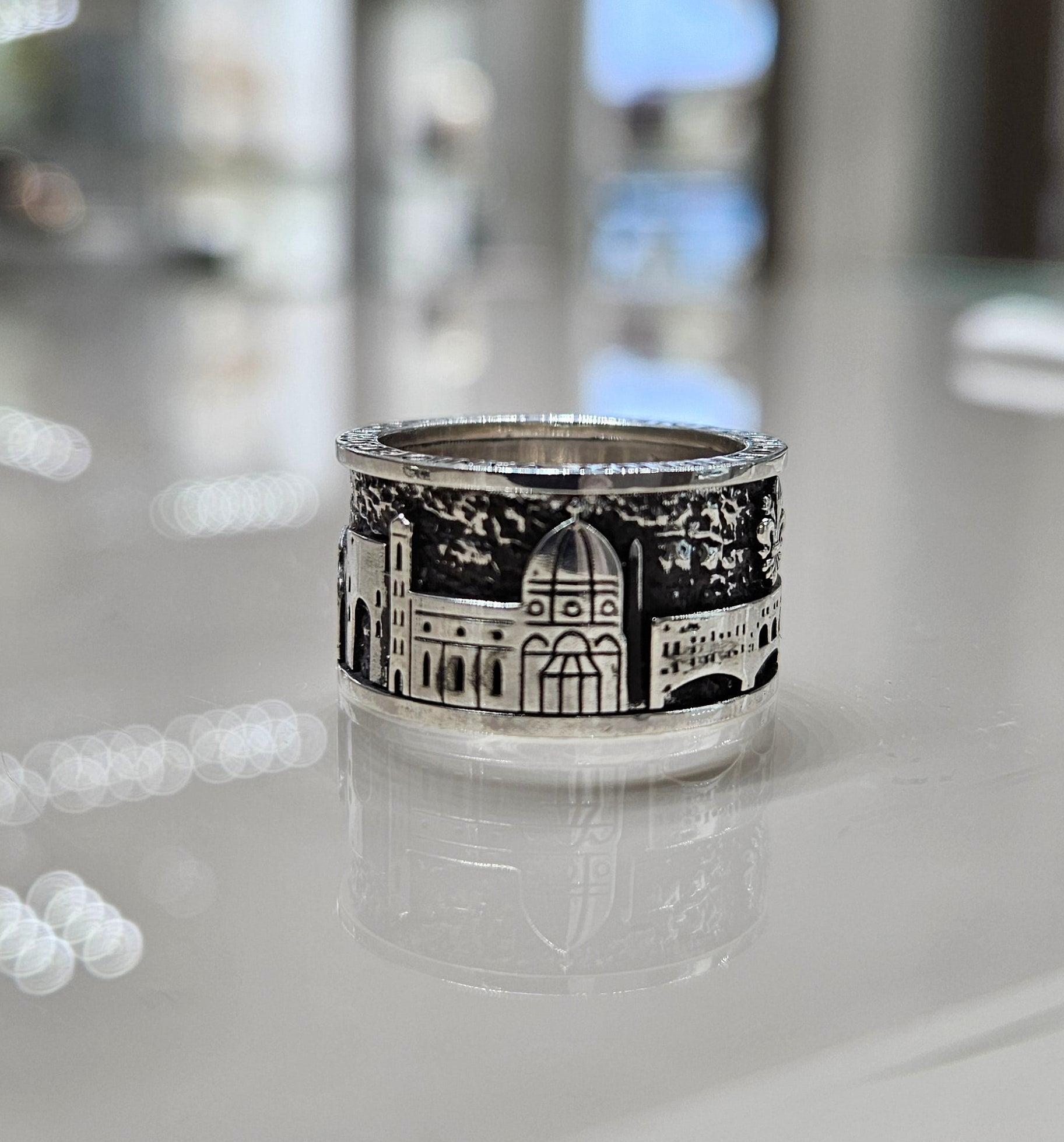 Anello realizzato in argento 925 con lo skyline dei monumenti più famosi di Firenze