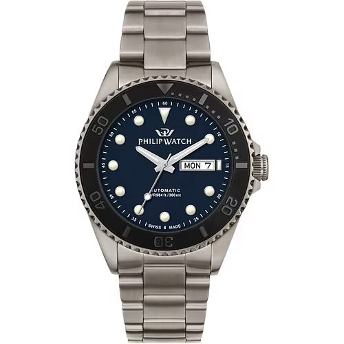 Genere: Uomo, Materiale e finitura cassa: Titanio, Misura cassa: 42.00mm, Spessore cassa: 13.25mm, Finitura cassa: Satinato, Colore cassa: Silver, Vetro: Vetro zaffiro, trattamento antiriflesso, Materiale cinturino: Titanio, Colore cinturino: Silver, Chiusura: Diver buckle with pushers, safety lock & extension, Swiss made: Sì, Water resistant: 30 atm, Garanzia: Ufficiale 2 anni Philip Watch, Confezione: Originale Philip Watch