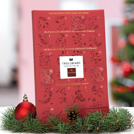 Il calendario contiene una selezione di cioccolato assortito di altissima qualità, realizzato in esclusiva per Trollbeads da Domori S.p.A., eccellenza italiana nel mondo del cioccolato.